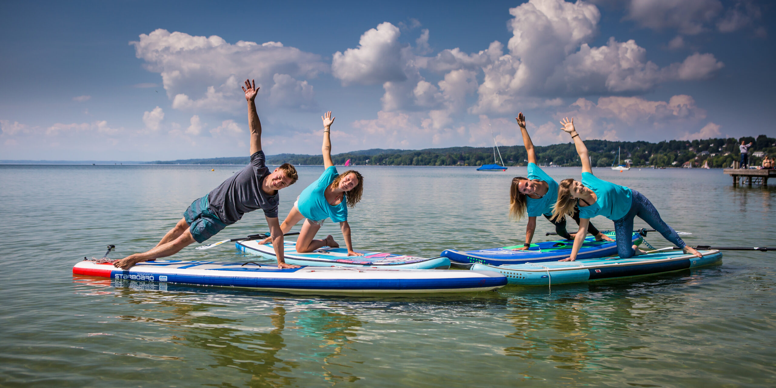 Yoga and fitness practice or Tai Chi on the water? Yes, that’s possible and it’s also a lot of fun for SUPers! Swap your mat for a SUP board and enjoy nature while strengthening your body & mind. On sunny days there is no nicer workout spot than in the middle of Lake Starnberg with the Alpine panorama in the background! Our trained team of teachers is looking forward to seeing you!